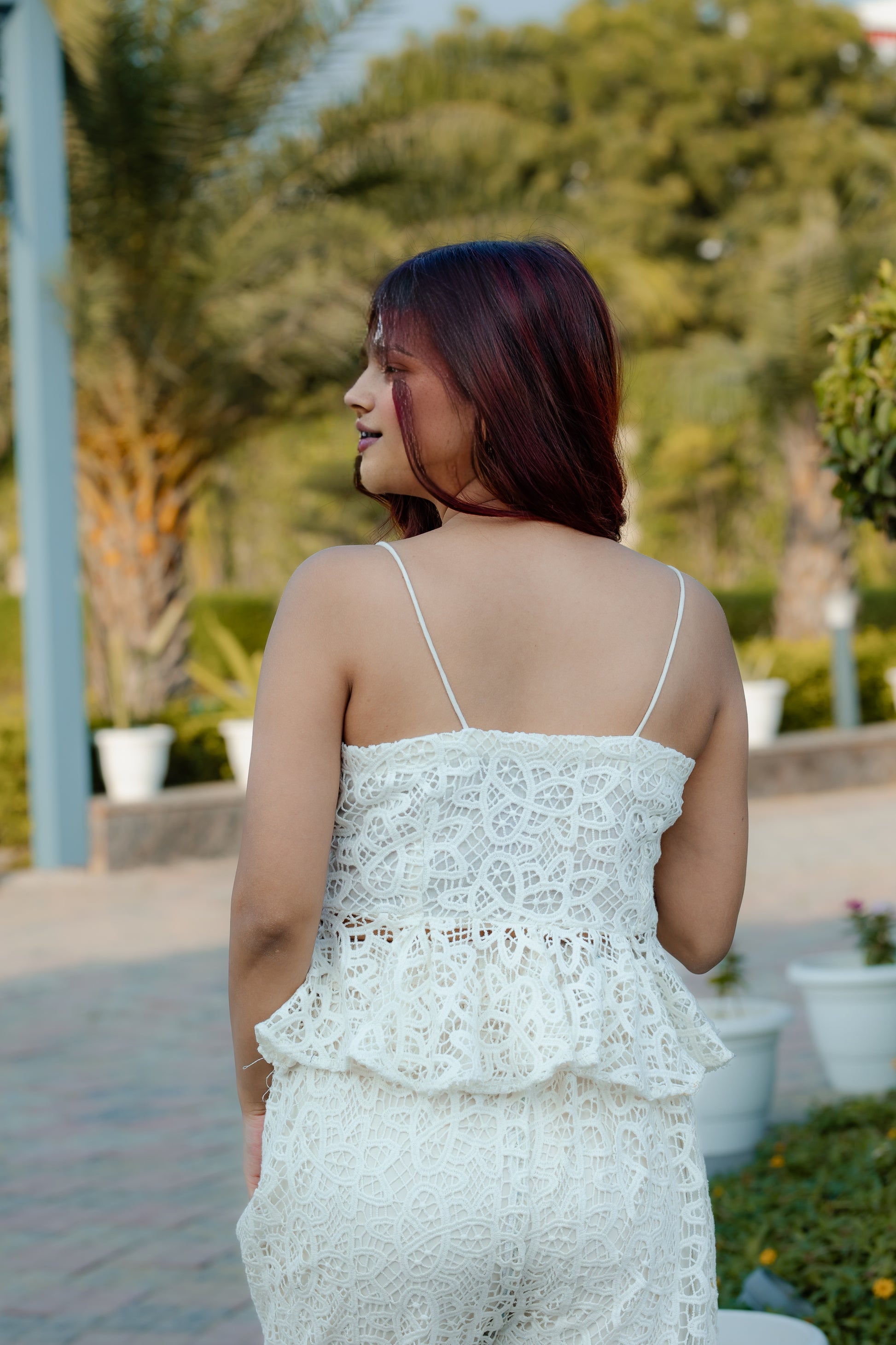 Introducing the Ethereal Top, a stunning piece from our Ethereal Co-ord Set that perfectly captures the essence of elegance and charm. Crafted from exquisite crochet lace fabric, this peplum top features delicate detailing that adds a romantic touch to your ensemble. With its lightweight and breathable design, the Ethereal Top is perfect for any occasion, whether dressed up for a special event or paired with casual bottoms for a chic everyday look.