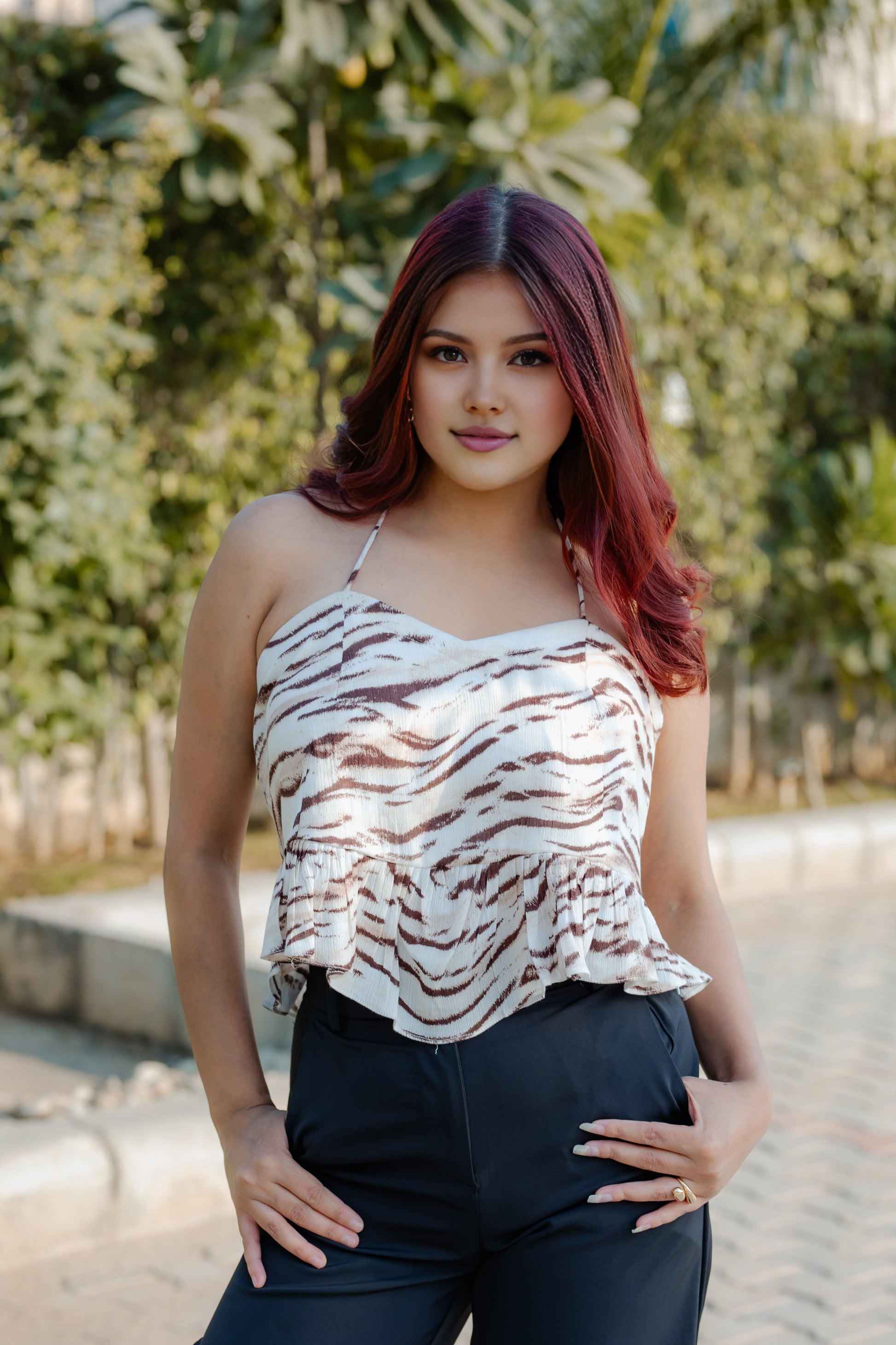 Introducing the Raya Printed Halter Neck Top, a stunning piece that combines style and sophistication. Featuring a chic halter neck design, this top showcases a vibrant print that adds a lively touch to your wardrobe. Whether paired with high-waisted jeans for a casual look or a flowing skirt for a night out, the Raya Top is your go-to choice for effortless elegance and fun!